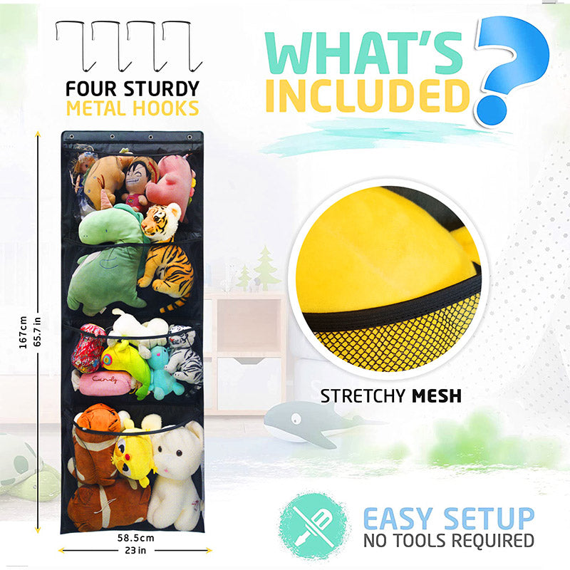Malla colgante de pared para almacenamiento, bolsa de malla grande de 4 módulos para clasificación de juguetes