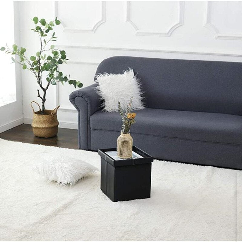 Taburete otomano para almacenamiento efecto cuero plegable